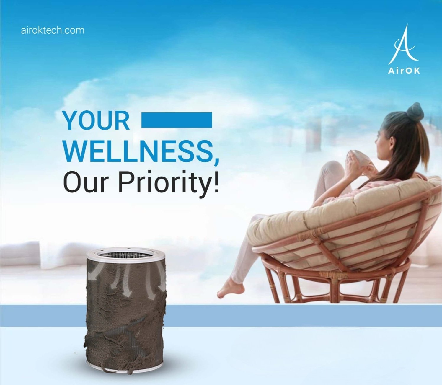 Every time you breathe, you exhale some 25 sextillions (that’s 2.5 × 1022) molecules of oxygen, and how many are aware of how much pollution in 25 sextillions we intake? As health-conscious individuals these invisible impactful particles need much more attention than usual. The proven scientific approach is the only logical solution to address this issue because indoor air quality is fundamental for a healthy lifestyle and we all as a family spend time indoors and breathe indoor air. To maintain excellent indoor air quality, have a regular cleaning and change of filters at regular intervals. AirOK being service-oriented offers free filter replacement service at regular intervals without fail.