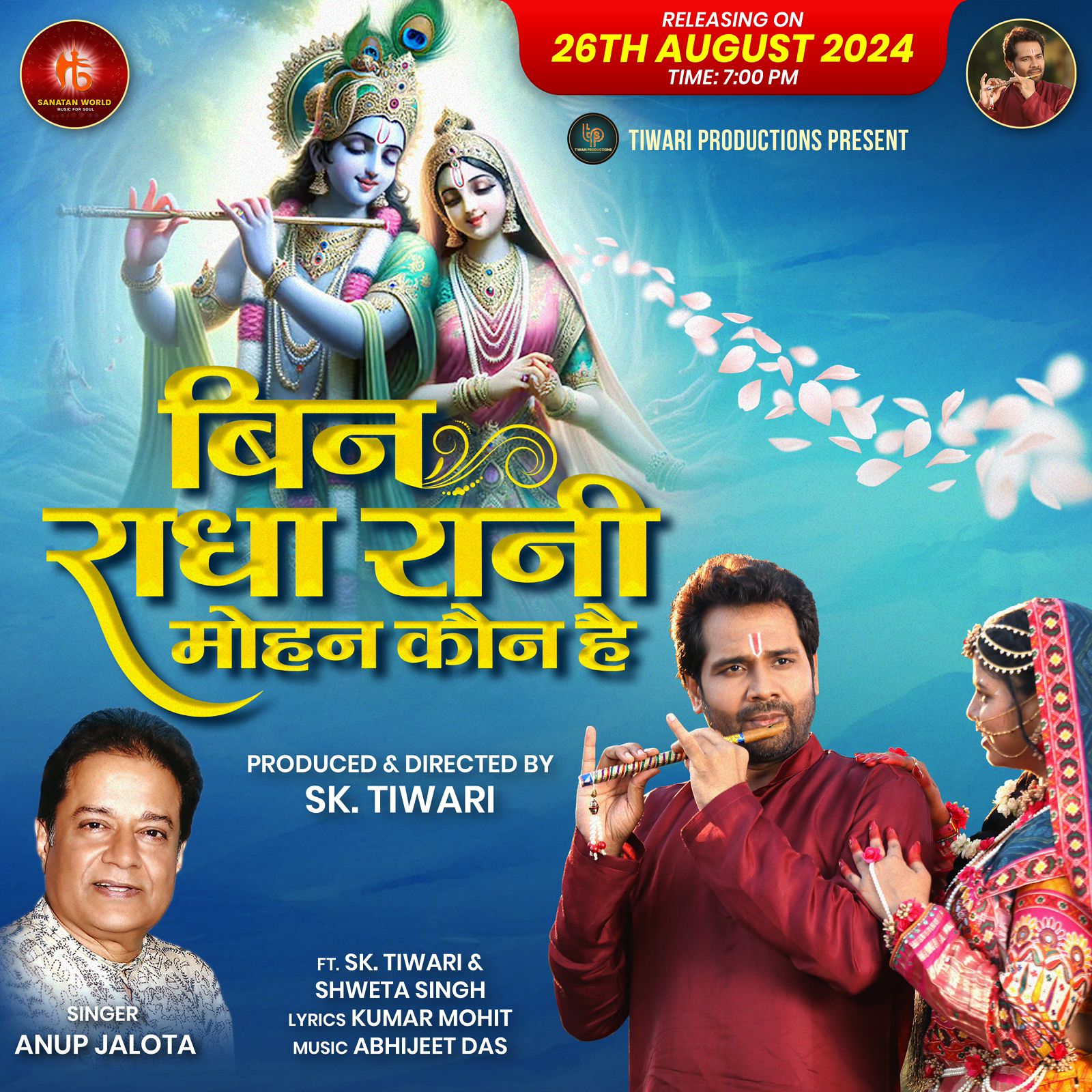Renowned Bhajan Samrat Anoop Jalota’s devotional song ‘Bin Radha Rani Mohan Kaun Hai’ sung by Anoop Jalota is going to be released on Sanatan World YouTube channel. The poster of the song has gone viral on social media as soon as it was released. The video features SK. Tiwari and Shweta Singh. The song is produced and directed by SK. Tiwari, with lyrics by Kumar Mohit and music by Abhijit Das. Padmashri Anoop Jalota has sung this devotional song. The song will be released on the Sanatan World YouTube channel and all Audio Ptaform on August 26, 2024, at 7 am. Producer-director and actor SK. Tiwari said, “Bin Radha Rani Mohan Kaun Hai” is a very special song, and our entire team is excited about it. We are grateful to Bhajan Samrat and Padmashri Anoop Jalota for lending his sweet voice to this devotional song. This will be a great gift for the audience and viewers from the Sanatan World YouTube channel.