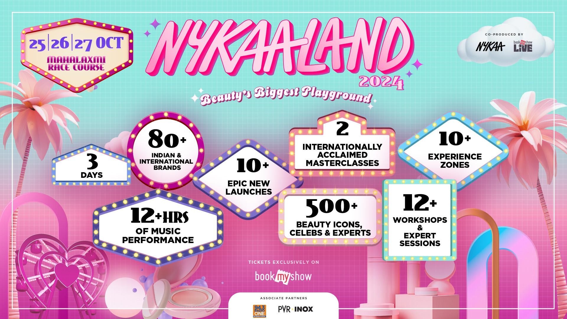 National, September 9, 2024: On World Beauty Day, Nykaa and BookMyShow Live are rolling out the pink carpet to announce that Nykaaland, India’s biggest beauty playground, is making its highly anticipated comeback for a second spectacular edition! Following Nykaaland’s jaw-dropping debut, which drew over 15,000 beauty and lifestyle enthusiasts, get ready to dive into the ultimate beauty and lifestyle celebration once again! Co-produced by Nykaa, India’s leading beauty and lifestyle destination known for pioneering industry-first initiatives, and BookMyShow Live, the live entertainment experiential division of BookMyShow, Nykaaland 2.0 promises three unforgettable days of beauty, fashion, and fun from October 25th to 27th, 2024, at the Member’s Enclosure, Mahalaxmi Racecourse, Mumbai. Tickets for this beauty-entertainment extravaganza are NOW LIVE exclusively on BookmyShow, India’s leading entertainment destination, starting at just Rs. 500/-.
