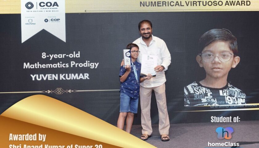 The recognition of Yuven’s talents reached a pinnacle at the Cluster of Prodigy award ceremony held in New Delhi on May 11, 2024. There, he was honored with the prestigious “Numerical Virtuoso Award” by Shri Anand Kumar, the esteemed Founder of Super 30. This accolade celebrates Yuven’s outstanding achievements and his remarkable journey from Nursery to Class 7 in just six years.