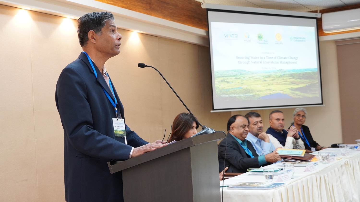Mumbai, March 22nd 2024 – In response to Maharashtra’s deepening water crisis, a critical one-day workshop titled ‘Securing water in the time of climate change through natural ecosystems management” brought together leading experts, policymakers, and stakeholders on March 21, 2024. Organised by WOTR (Watershed Organisation Trust), India Climate Collaborative and the Government of Maharashtra, the event coincided with World Water Day’s theme – “Water for Peace” – highlighting the vital connection between water security and social stability.