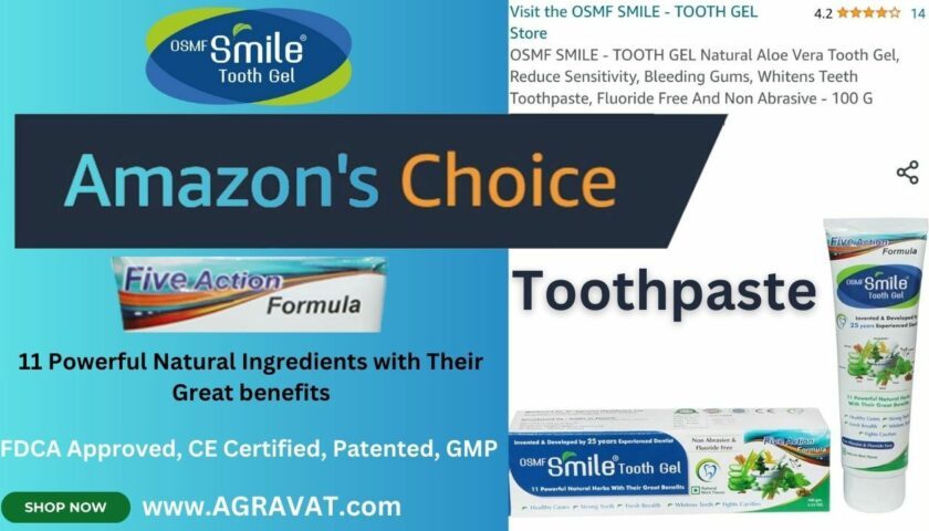 AHMEDABAD, GUJARAT, INDIA, JUNE 3, 2024 – That’s great news! The “Amazon’s Choice” badge is a mark of recognition for products that are popular, well-priced, and highly rated on Amazon. OSMF Smile Tooth Gel Natural Toothpaste earning this badge highlights its quality and effectiveness, particularly for its Five Action Formula aimed at promoting a healthy smile. It’s a testament to the product’s reputation and the satisfaction of its customers.