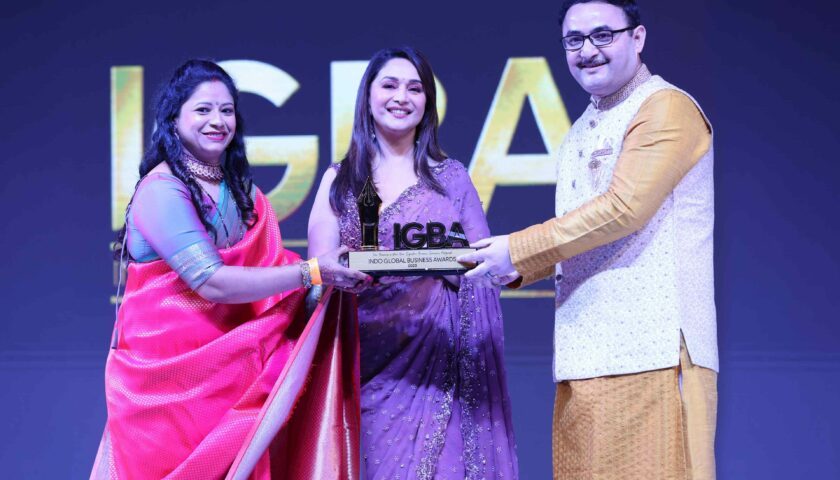 Padma Shri Madhuri Dixit, an iconic figure in the Indian film industry and a symbol of grace and excellence, graced the occasion with her presence. She presented the award to Dr. Rajesh Malhotra, the visionary leader behind Parmanu Defence Academy.