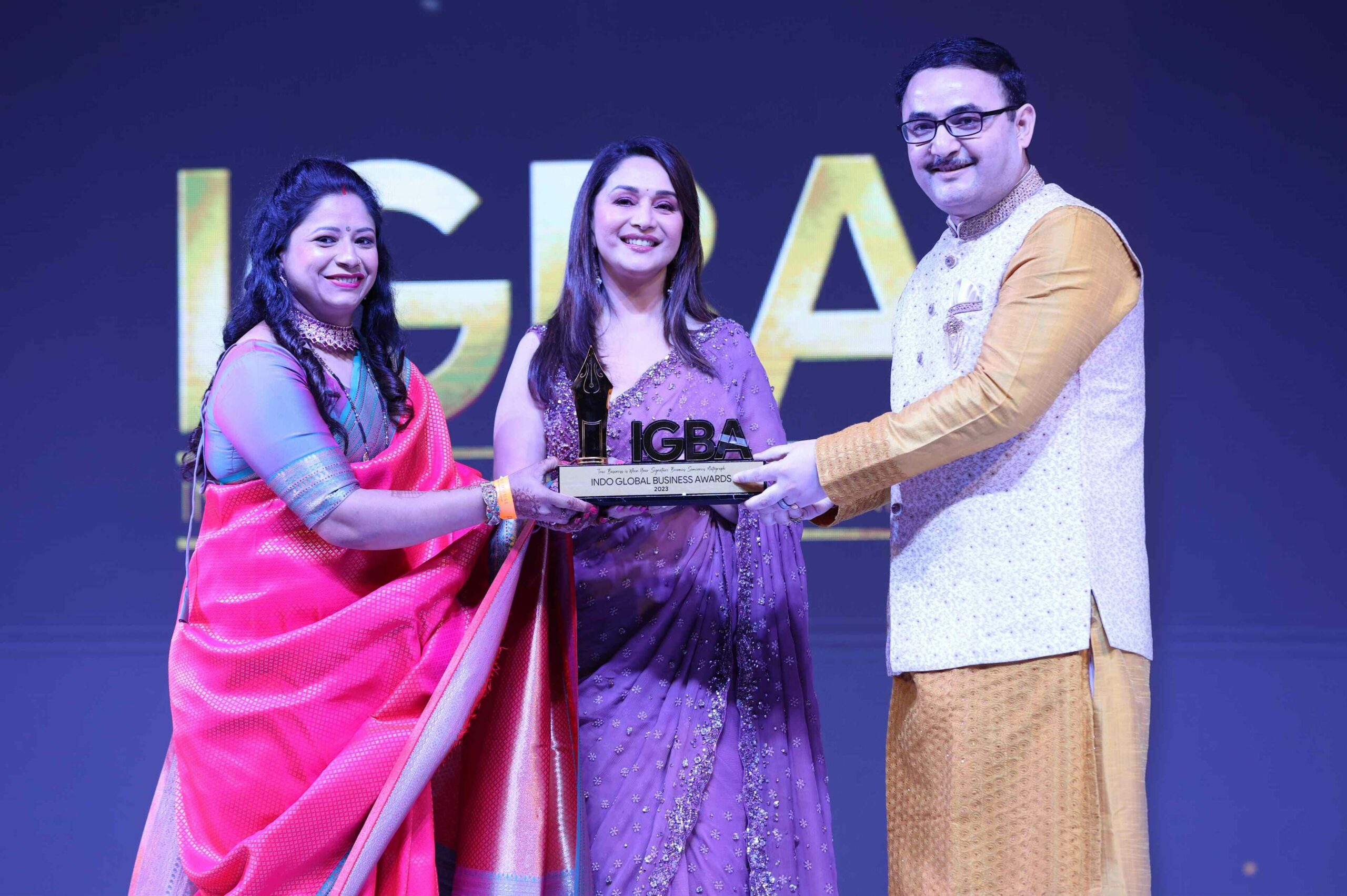 Padma Shri Madhuri Dixit, an iconic figure in the Indian film industry and a symbol of grace and excellence, graced the occasion with her presence. She presented the award to Dr. Rajesh Malhotra, the visionary leader behind Parmanu Defence Academy.