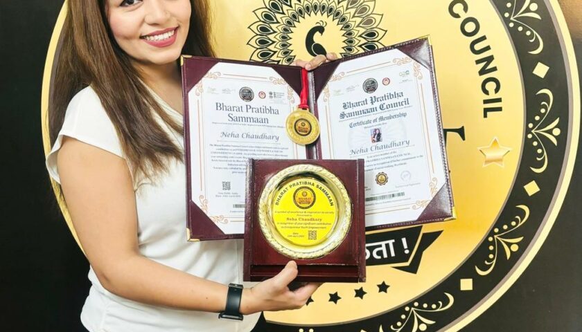 Neha Chaudhary’s journey towards becoming a guiding light for aspiring professionals has been rightfully acknowledged and celebrated through her reception of The Bharat Pratibha Sammaan Awards. These esteemed accolades hold a distinguished position in honouring individuals who have made remarkable contributions to society, particularly those who serve as unsung heroes driving positive change. The Bharat Pratibha Sammaan Awards stand as a testament to the vision of acknowledging the unsung heroes among us—individuals and businesses that are the driving force behind positive change. Established with this noble vision, the awards celebrate and foster exceptional achievements that shape a brighter future for our nation and the world.