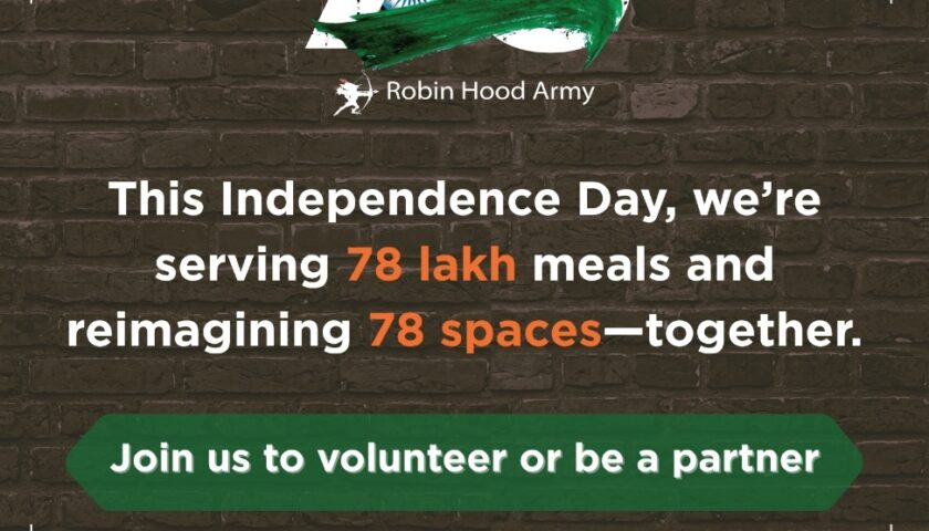 The Robin Hood Army (RHA) – a volunteer-driven, zero-funds organisation – is currently executing #MissionSankalp78, a nationwide campaign launched to mark India’s 78th Independence Day. The mission brings together volunteers, civic bodies, and corporate partners to address hunger and transform public spaces across India.