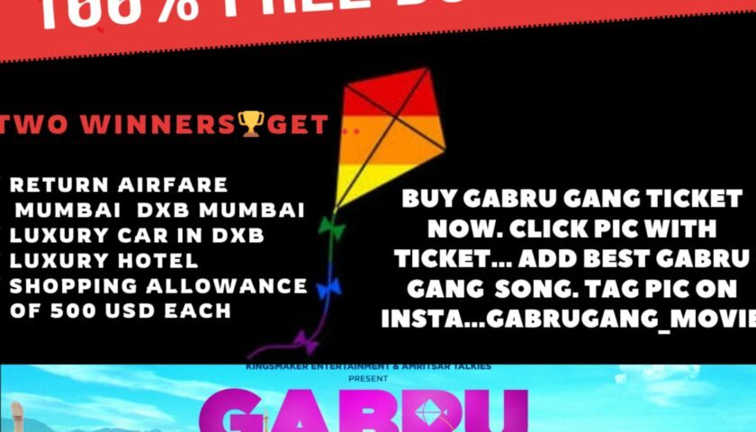 Don’t miss the opportunity to experience the magic of “Gabru Gang” in the theatres. Join Rajbeer and the Gabru Gang on their exhilarating journey through the skies, and let the spirit of kite flying soar once again in your hearts. And of course win that golden ticket to travel to Dubai, stay at a luxury hotel, get driven by a chauffeur vehicle and shop with the USD 500 allowance from the makers. What more can one ask for!