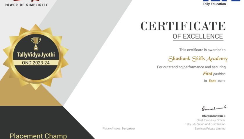 Shashank Skills Academy has once again demonstrated its commitment to excellence in education and job placement by securing the First position in the East Zone for the TallyVidyaJyothi Placement Champ Award. This prestigious accolade recognizes the academy’s remarkable performance in skilling, upskilling, and reskilling the youth in the region, encompassing states like Arunachal Pradesh, Assam, Bihar, Jharkhand, Manipur, Meghalaya, Mizoram, Nagaland, Odisha, Sikkim, Tripura, and West Bengal.