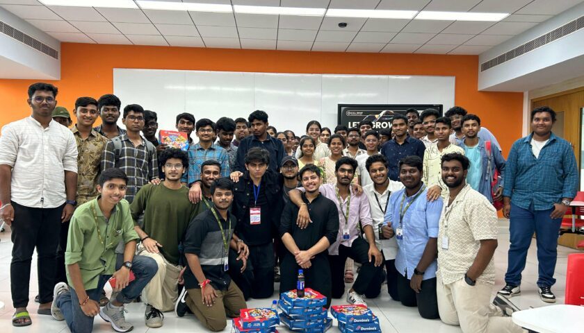 SRM AP University’s E-Cell Club recently hosted a highly successful event, attracting over 1,000 students from various disciplines. The event served as a vibrant introduction to innovation and entrepreneurship for new students, offering them a unique opportunity to engage with the E-Cell, learn about its activities, and enjoy complimentary pizzas and Pepsi, generously provided by the event’s sponsor, Total Fresh, a rapidly growing local food delivery app.