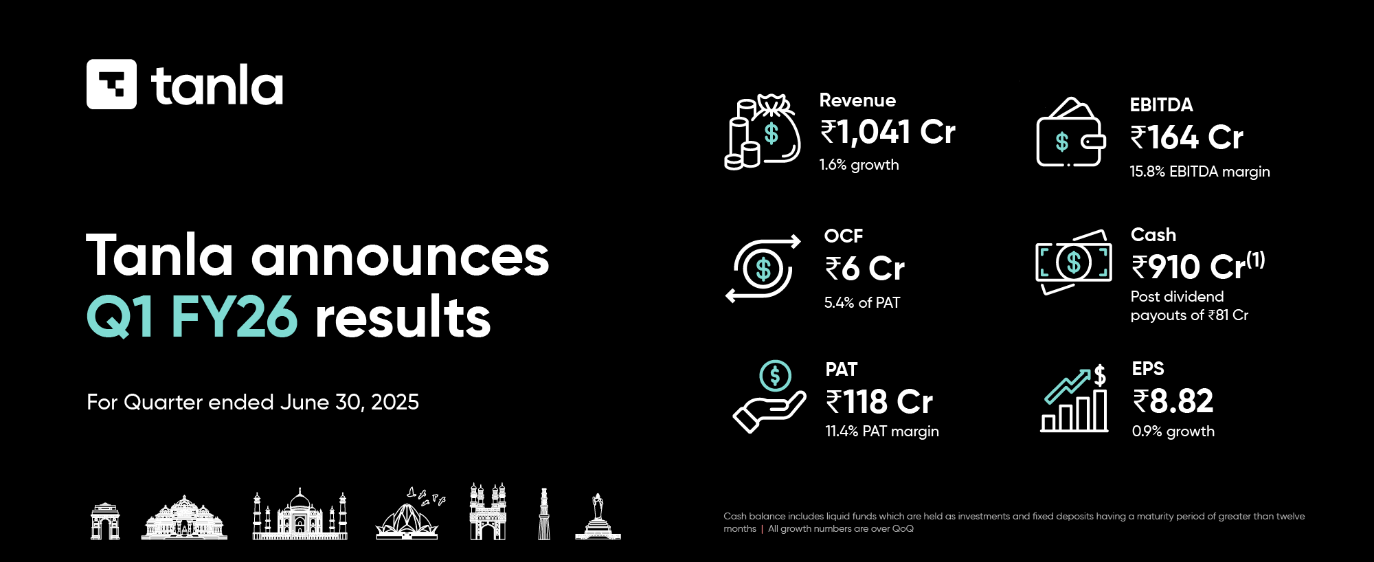 HYDERABAD, India — July 24, 2025 — Tanla Platforms Limited, India’s largest CPaaS provider, today announced its financial results for the first quarter of FY26.